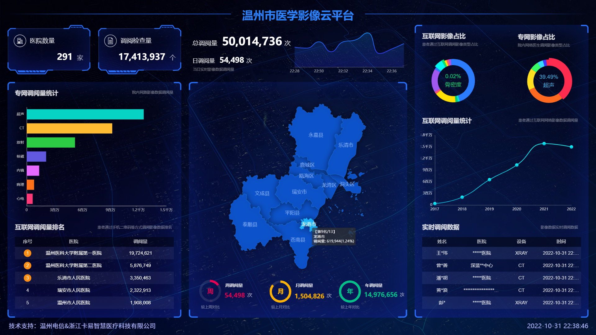 公司承建了超億人口的山東省影像云平臺,以及互聯網調閱量最大、榮譽獲得最多的地市級溫州醫學影像云平臺。